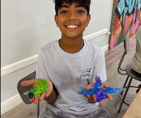 In Tween Underground, artists get the freedom to dream, design, and build whatever inspires them. Each week brings a new creative adventure: drawing, painting, resin art, clay, printmaking, jewelry making, stuffed animals, tie-dye…and so much more. The ideas never stop, and neither does their imagination.