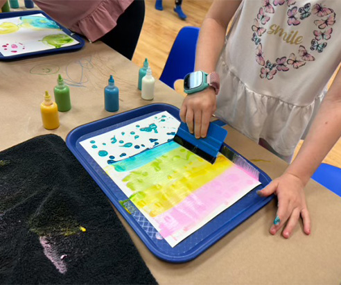 After creating their masterpiece, kids get 10–15 minutes of sensory play in our exciting splash room, where they can explore textures, colors, and messy fun in a safe and supervised space.