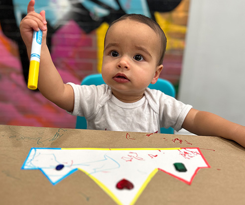 A perfect first art experience for little creators and their grown-ups! Parents and children work together on playful, hands-on projects that build fine motor skills, pincer grip, and hand-eye coordination. Each class includes painting, gluing, stamping, and creative exploration in a safe and engaging environment. After creating together, children enjoy supervised sensory play in our splash room for extra texture-filled fun.