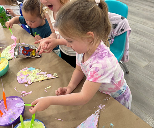 Perfect for young artists who love to paint, glue, and get creative! This workshop focuses on building early art skills such as fine motor control, pincer grip, and hand-eye coordination through fun, age-appropriate projects. After creating their masterpiece, children enjoy 10-15 minutes of sensory play in our exciting splash room for an extra dose of messy fun.